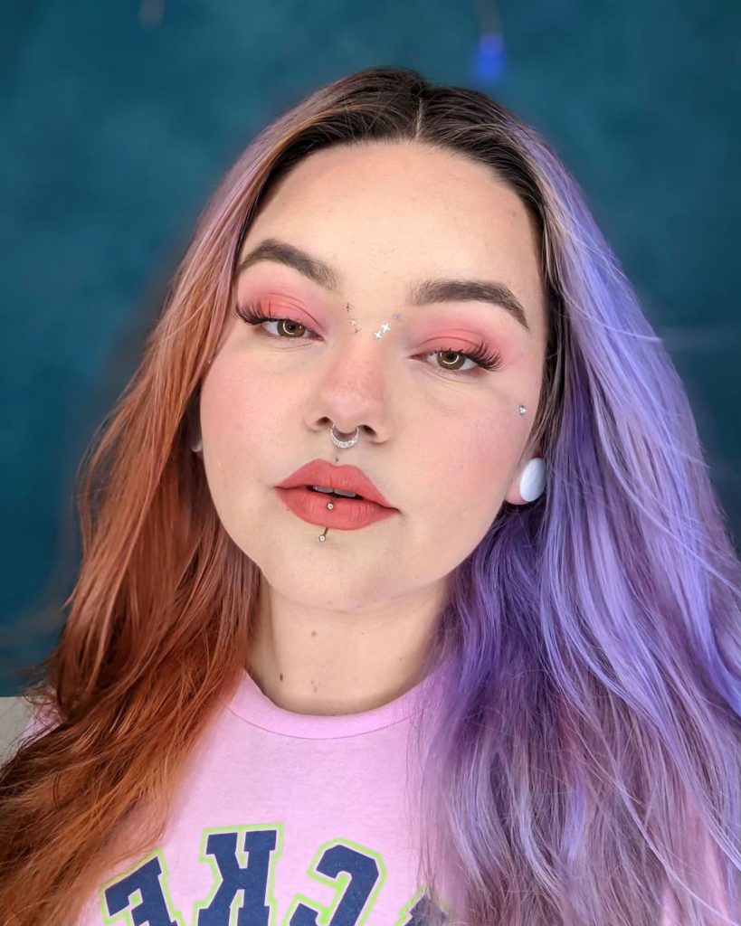 For those in love with pastel tones, this peach and lavender combination is pure magic. The warm peach on one side flows seamlessly into a cool lavender on the other, creating a dreamy contrast that’s perfect for spring and summer. This style works beautifully on both short and long hair, especially when styled in soft waves to show off the playful colors. It’s a fun, unique choice for anyone looking to add some color without going for bold, saturated tones. The pastel shades are also easy to maintain, making this look both practical and effortlessly stylish.
