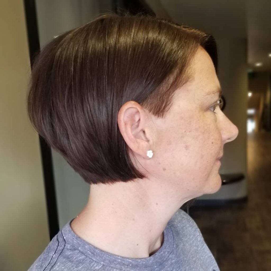 The short pixie haircut, which is shaved entirely, gives a statement of modernity and dabness. Ideal for the independent and carefree types of women, this tilted cut is the coolest and simplest hairstyle that you can have while still maintaining an outlook of trendiness and structure.
