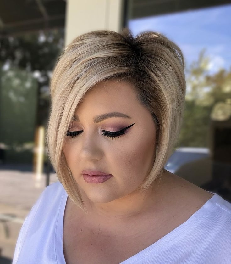 This style suits plus size women or even one wishing to make the face longer. It would be an excellent option in 2025 that can suit someone who is fond of short and statement cuts that remain feminine. Put it with obvious brows and a refreshing lip to give a posh balanced appearance.