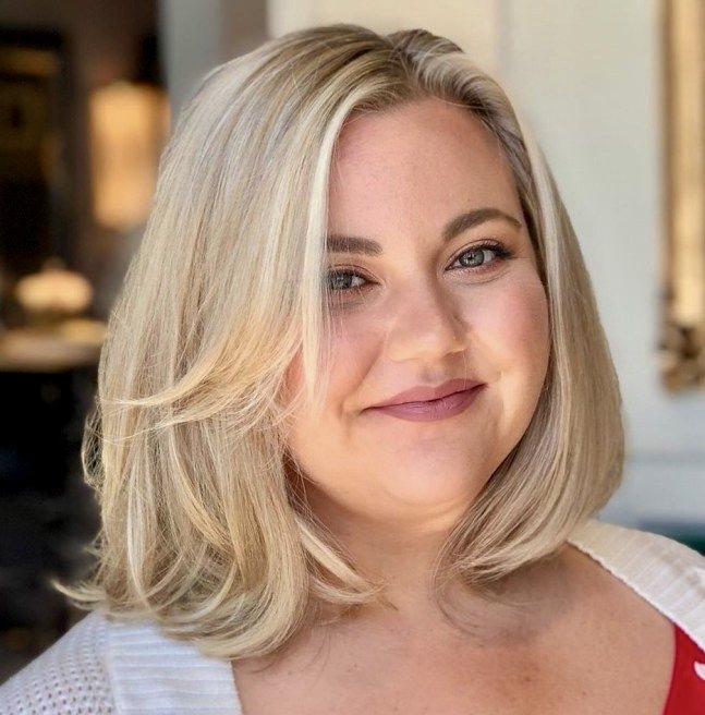 Such a chic wavy bob is timeless and has an involved side part, which lends some sophistication. The soft waves add dimensions and softness, which is one of the most suitable looks hiding a fatter cheek.