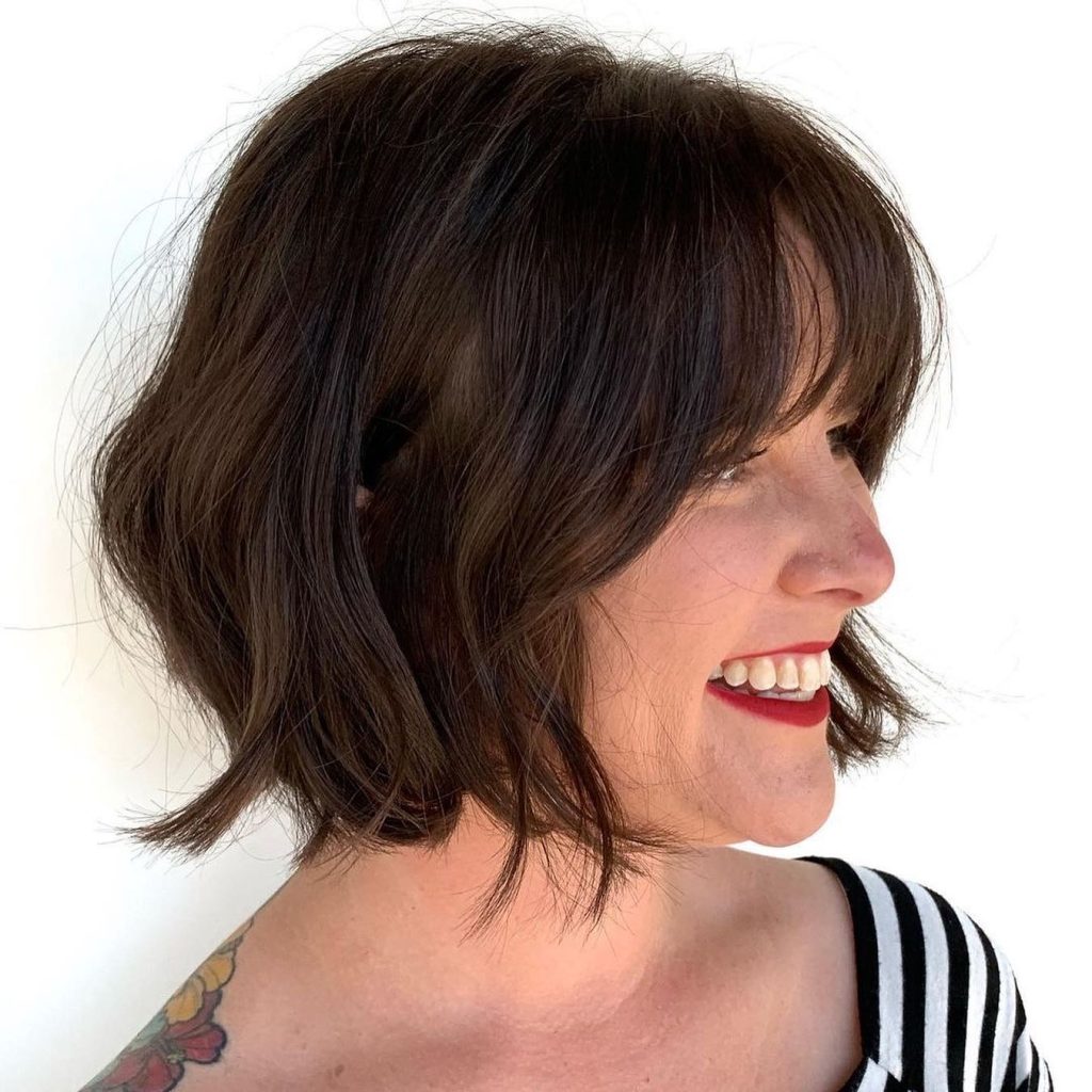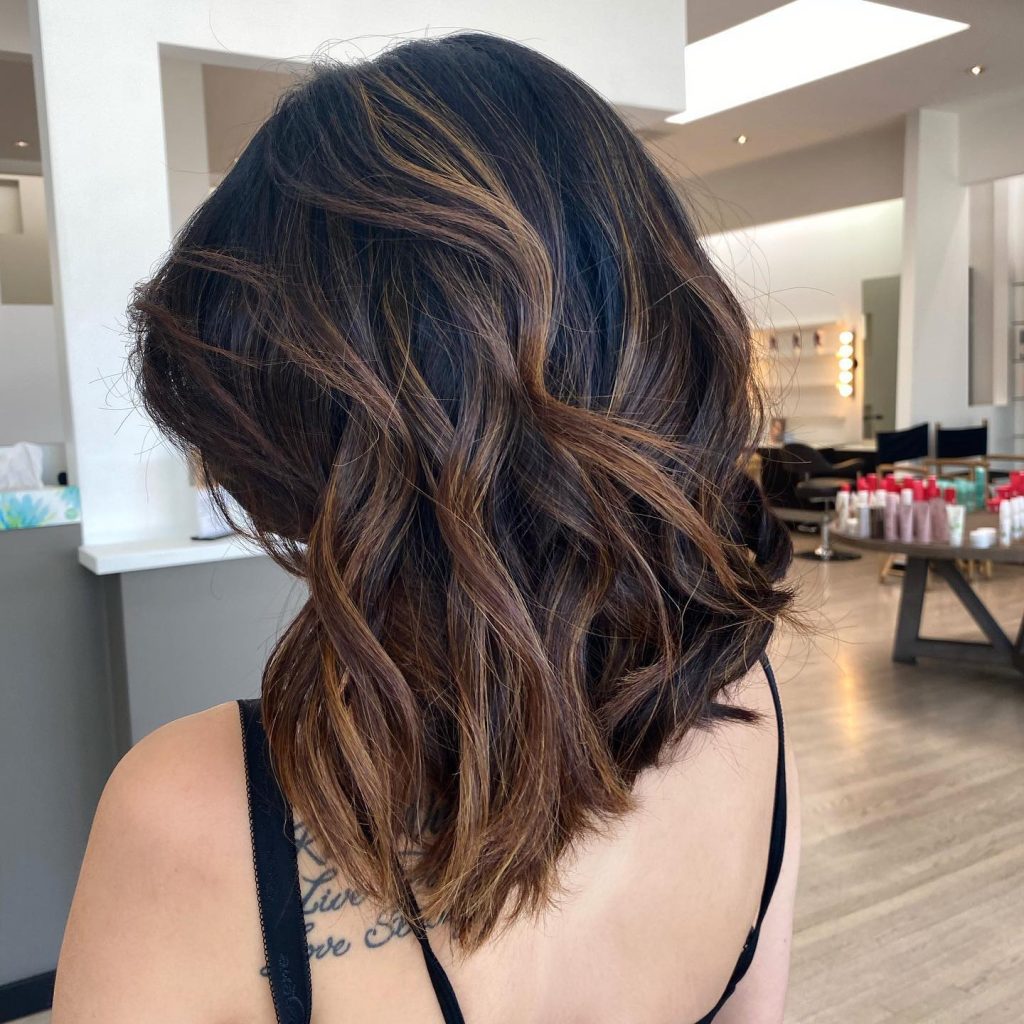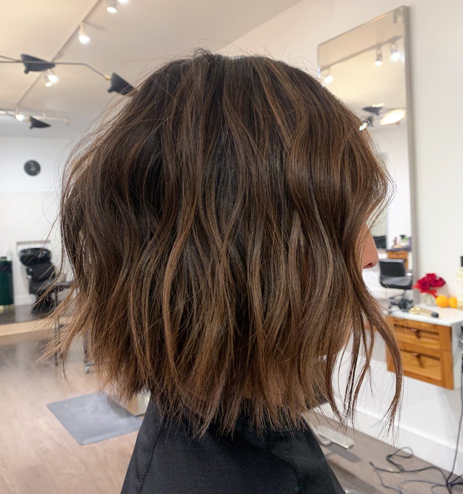 The neat, brown bob which comes with minimal styling and a modern look showcases the subtle highlights that bring about the 3D effect without dominating the hair’s original color.The women’s hairstyles are for those who like the minimalist approach but would like to stand out anyway.The blunt ends, which give this bob the choppy vibe, are balanced by the soft hints of brightness that the highlights bring in. We particularly enjoyed this hairstyle on straight hair, and medium length hair looks fantastic too.This hairstyle will benefit from the addition of shine serum, which will maintain the glossy and sophisticated look throughout the entire day.