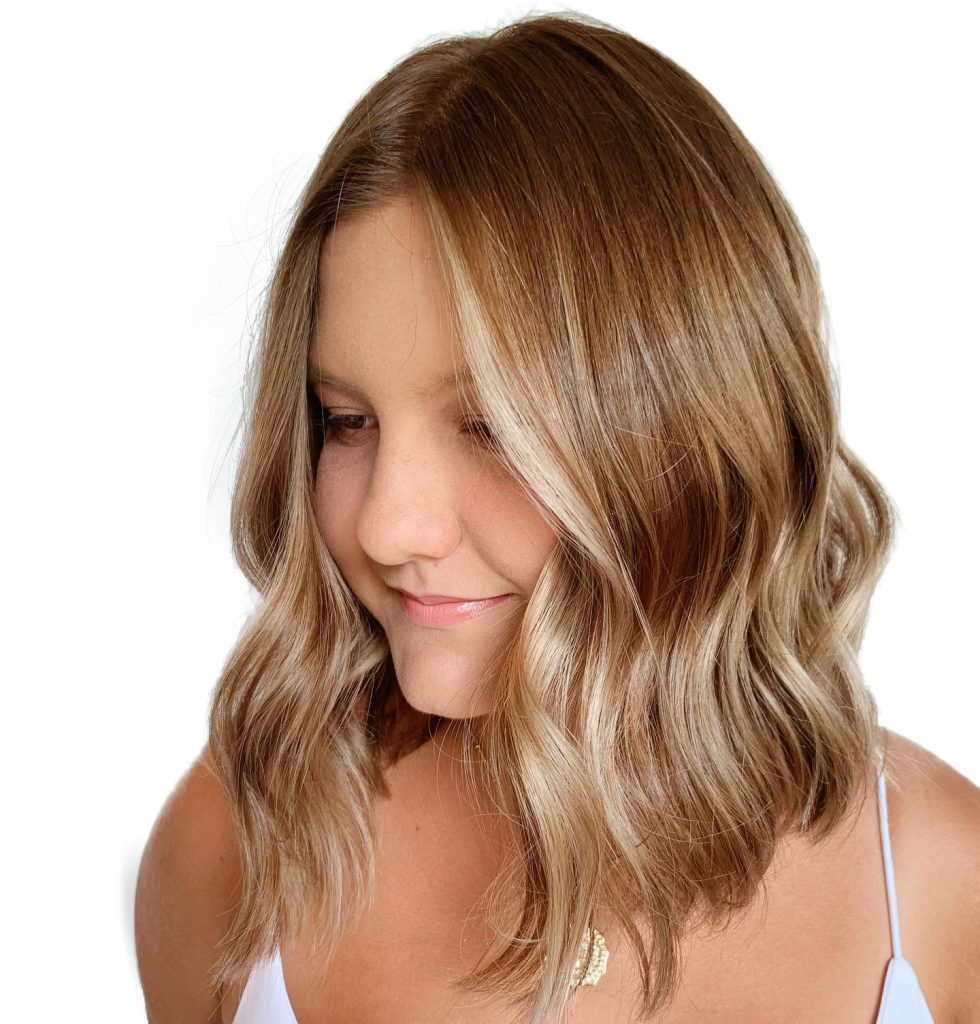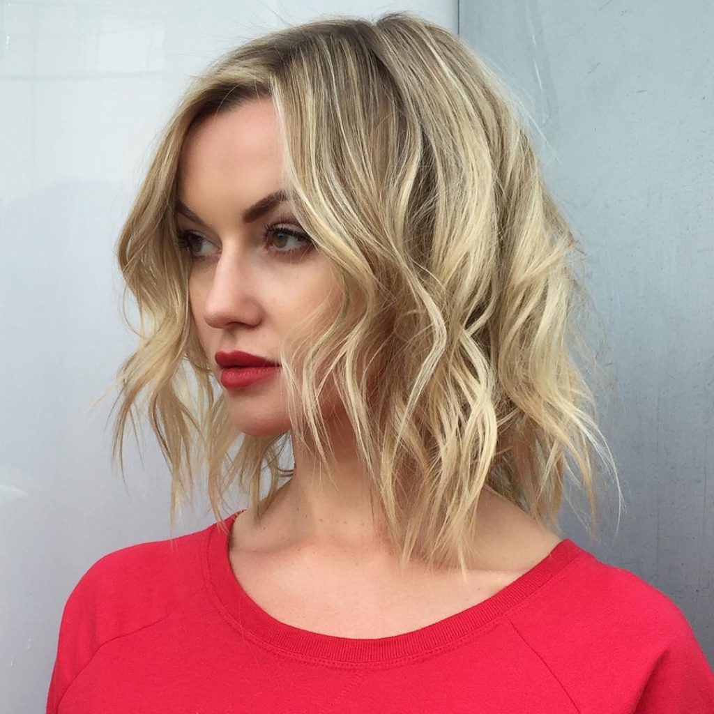 For beach lovers who prefer a laid-back, relaxed look, this soft-textured wavy blonde lob is the best option. The waves give it a naturally-mixed appearance that suits the style perfectly; thus, it is a great option for shoulder-length hair that is not volumetric enough. This multi-shaded hairstyle not only makes the person look beautiful but also recaptures the youthfulness that she has lost. The discreet layers bring the hair some movement. The waxy curls and the fingercombing of the waves are trendy, simple, and, above all, effortless.