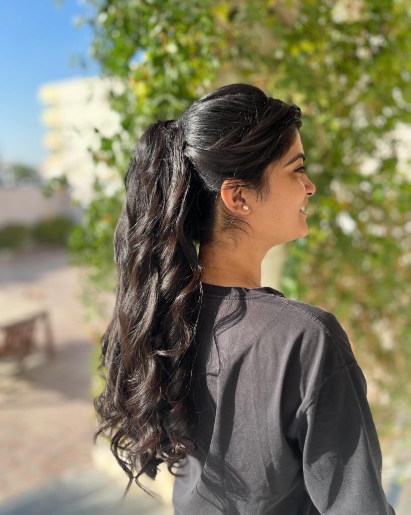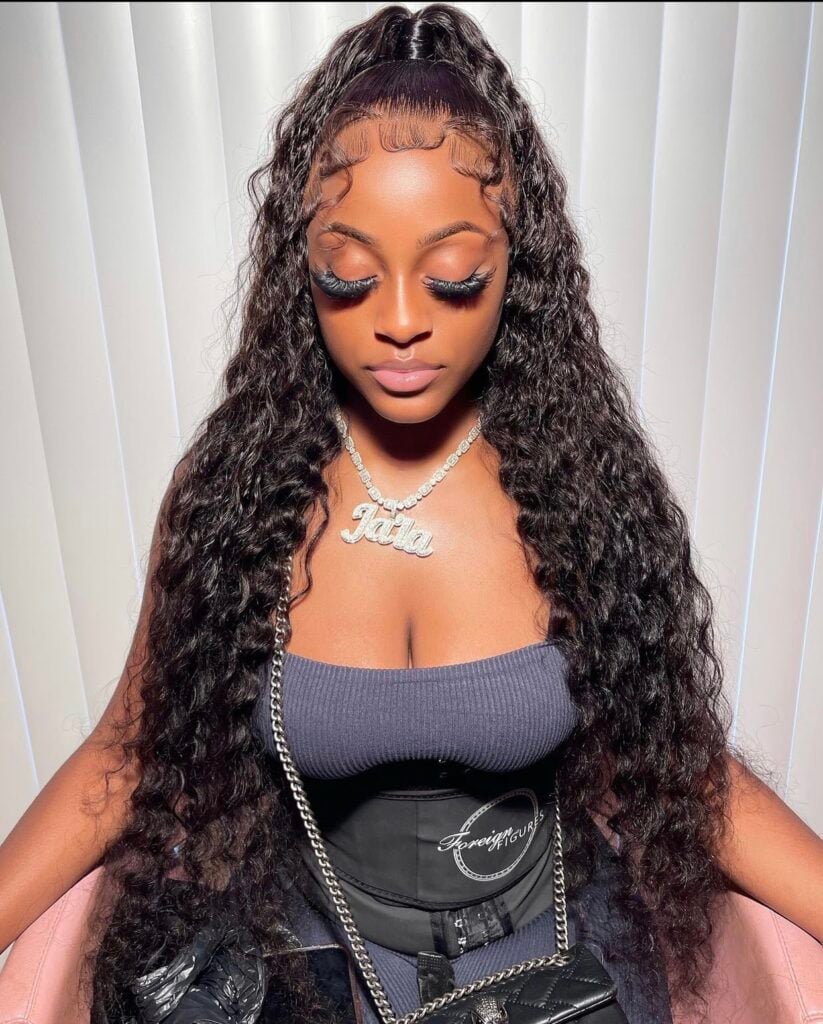 Neat and curled edges are the main features of this high ponytail, which waves through the head like a crown. This voluminous look gives the impression of a peacock feather opening up. The clean lines of baby hairs are exquisite and bring out a different style that is opposite to that of the curled hair. The hairdo is the best choice for long-haired girls who are looking for a protective and at the same time elegant and neat hairdo. The difference of the high ponytail and the precise cleaned edges is that the hairstyle can be worn both in formal and informal gatherings combining the two elements of sophistication and natural beauty.