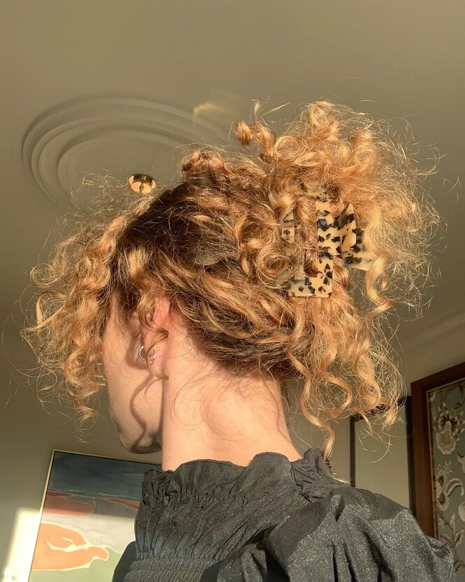 19. Messy Curly Bun with Hair Claw