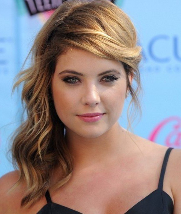 An elegant choice for round-shaped faces would be this shoulder-length bob with a side part. Side part creates asymmetry which not only helps to elongate the face but also provides a slimming effect around the cheeks. This medium length haircuts are for girls who have straight hair and want to look always neat and classy. It may be worn casually or dressed up, which makes it a versatile option for day and wear.