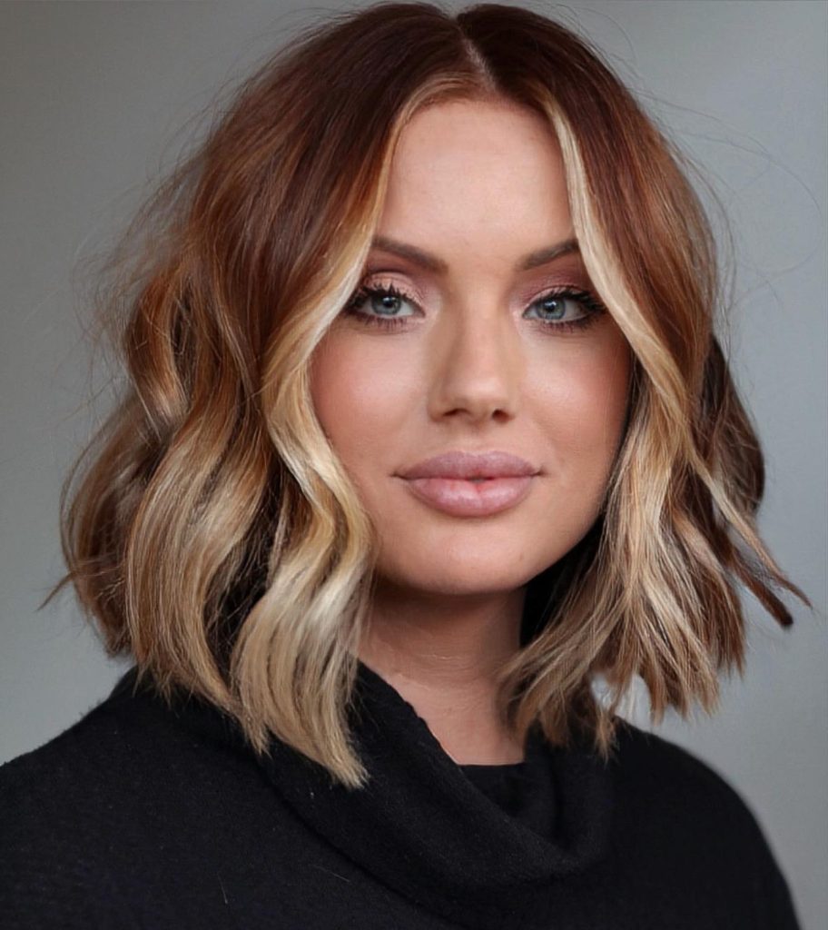 A wavy lob (long bob) with a middle part is a great choice for the trendy round faces that draw the eyes down and elongate the facial structure. The waves give a sense of volume, and the medium length ensures you can make different hairstyles. You can wear this hairstyle in two ways: casual or formal, thus, making it the best option for those with curls who like hassle-free yet classy styles. The middle part is a good choice to create balance on the face and achieve a polished look at the end.