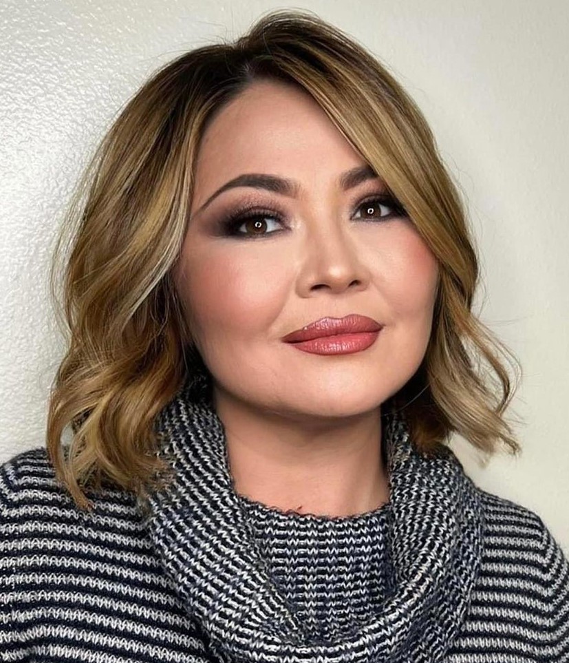 A bob style with texture blonde and soft layers is the best for making volume without adding width to round faces. The short layers and light waves give this bob a natural, tousled effect, that short thick hair can use it with a bit of a flair. The soft texture and the warm blonde shade enhance the brightness and vividness of this hairstyle. The hairdo is for the ones who prefer a loose bohemian vibe and less styling.