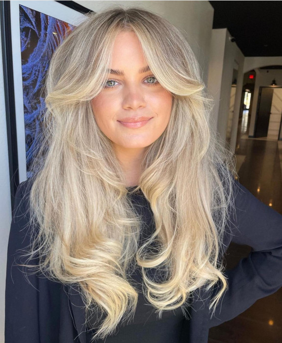 For ladies with a round face seeking to make it seem more oval while having a soft romantic feel, this is a great long layered hairstyle with curtain bangs. The curtain bangs create an illusion of length, which draws the attention downwards and therefore the face is seen more oval. This kind of cut can be achieved with long layers that begin at the chin and go down in a natural way and will give you a good style, the combination of relaxed and chic, perfect for women who prefer a no effort yet fashionable image. If your hair is long, straight, or rises slightly, this hairstyle will offer you versatile styling opportunities, from beachy waves to sleek, polished looks. To achieve the volume and bounce appears to be, you should have regular trims and use light styling products.