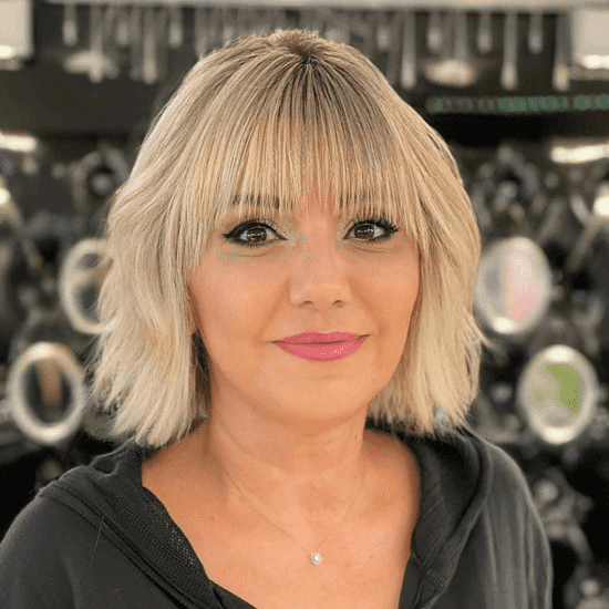 The playful character and strict clean lines of the modern bob style with straight bangs are mixed together in this model. The short bangs being a focal point, they direct the eye toward the face and add a strong, youthful effect. This cut, which can be sporty and new to the traditional short bob, short thick hair, and medium-length hair users is a perfect fit’s your hair type. The fringe that has a blunt cut and the layer that is slightly textured give the look a distinct touch, which is perfect for people who are into grunge, indie, or retro styles. Match the noots with a striking lipstick for a statement style to grab everyone’s attention.