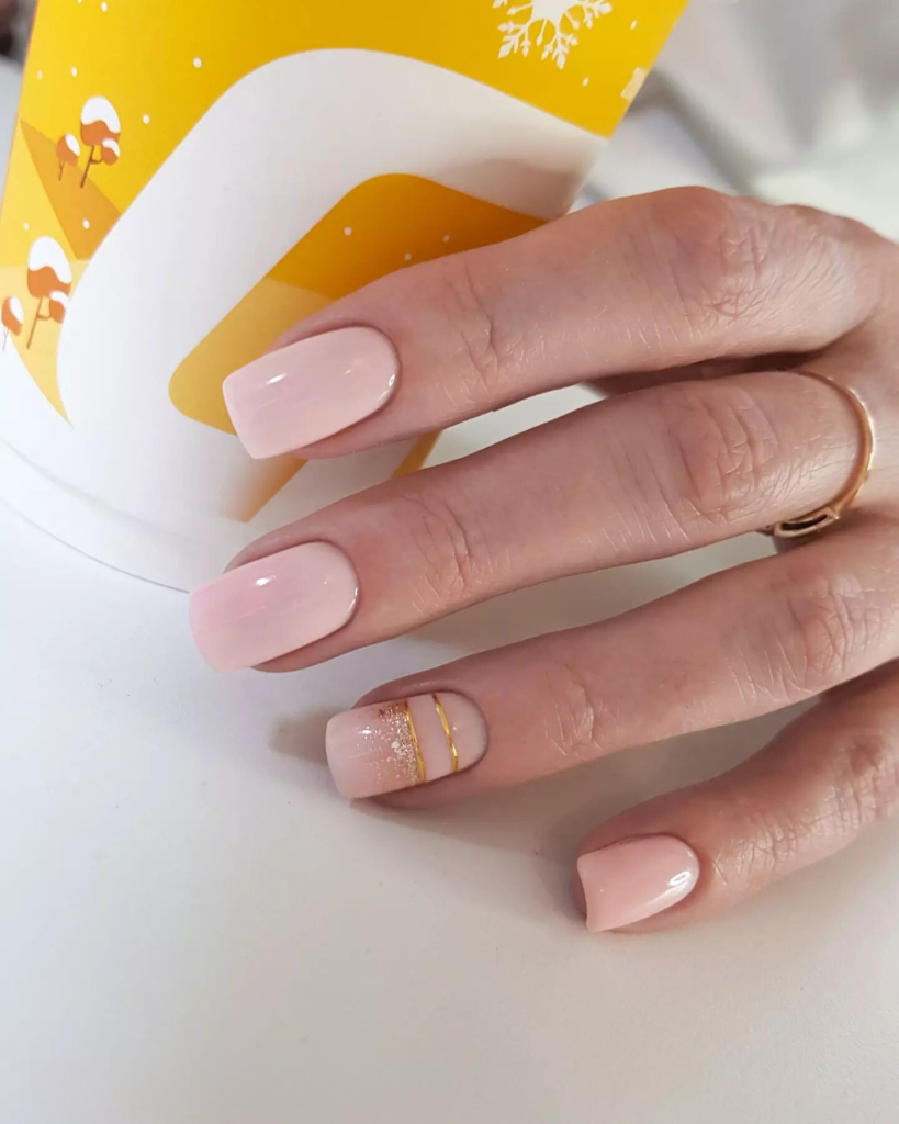 The short square nails are a perfect fit for the minimalistic thinker who seeks for a style that is simple and yet sophisticated. The neutral color is always en vogue, but just a sprinkle of gold glitter accompanies this design with the necessary provision. Nothing more is required than that for a smooth and stylish change from a workday in the office to a dinner party in the evening.