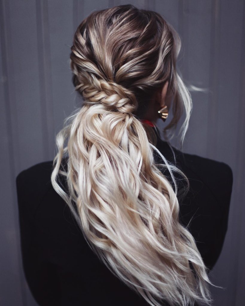 This big braided twist ponytail is a combination of the rigid twists on top and the flowing waves at the bottom. This hairdo serves as a styling option for many occasions including both formal and informal. The incorporation of texture and movement upgrades this style to be the top choice for every event.