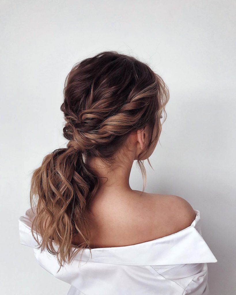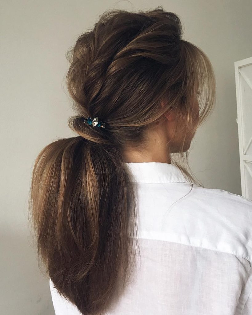 The twisted crystal ponytail that sparkles like the crystal is indeed a bewitching and charming hairstyle. The long ponytail made up of the structured twist adds a pretty twist to the long ponytail idea, making it suitable for galas and formal evenings. This style can be well complemented by heavy makeup and a suitable outfit.