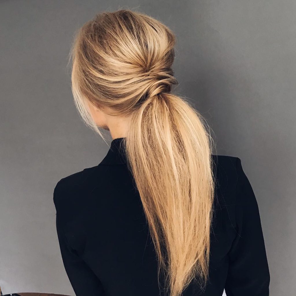 A chic look with this hairstyle is a simple and easy twisted ponytail. It is perfect because the elegant twists on the top make a line transition to a long ponytail so this hairstyle is good for business meetings or formal events. Moreover, you can use shine spray to add an effect of the super sleek finish.