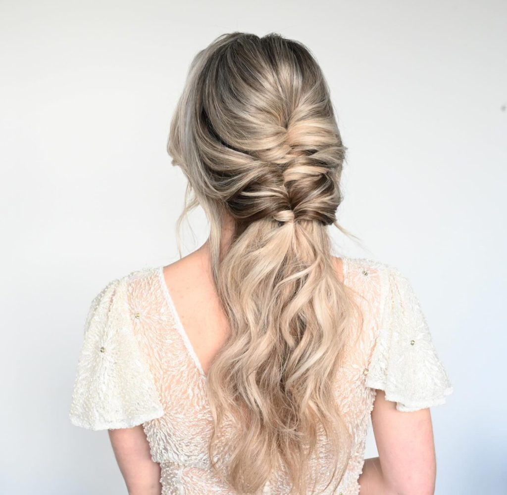 The construction of this dreamy hairstyle debated the loose twists, soft waves, and low ponytail, which made it perfect for any wedding or formal event. The waves’ elastic movement contributed to a more fashionable view, while the twists added to its casualness by not appearing so stiff. Also, pearl losings could be a bonus to the romantic leave of charm.