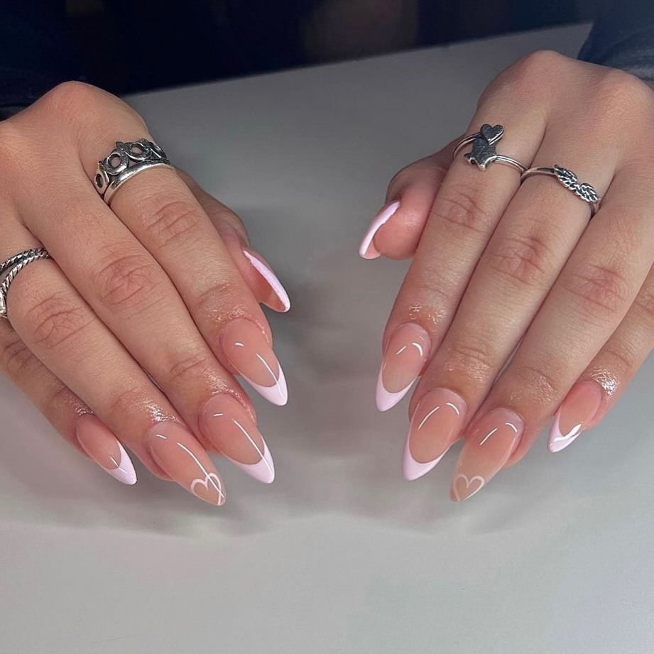Italian in nature, these French almond nails re-invent the pink and white combination with cute heart designs. The delicate design is flirtatious without being overly aggressive and provides a marvelous combination of romance and classiness. It is the type of manicure that makes you grin each time you look at your hands fresh, young and surely cute.