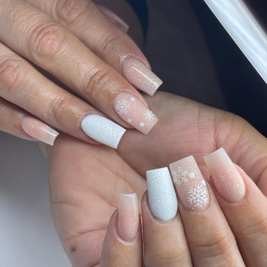 These nails are ideal whereby ladies want a nice design and not too flashy. The snowflakes keep them not only seasonal but the neutral base also makes them simple to match with any outfit. They are particularly flattering when placed on long square sets and when they finish with a sleek look that is sophisticated yet still playful.