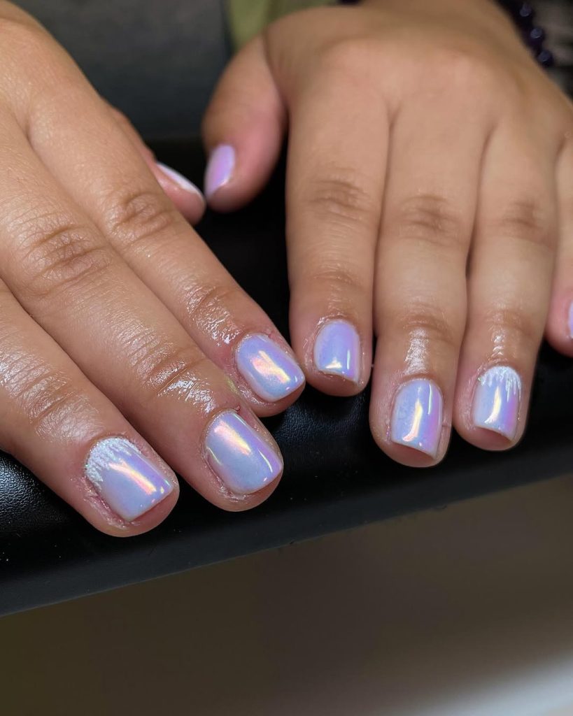 Almond nails are most flaterred with this style and the colors have additional space to shine. Iridescent winter colors such as these are trending in 2026, as they provide a fresh alternative to deep and moody colors. They should be combined with warm knits or even a stack of rings to ensure that the colors are even more prominent.