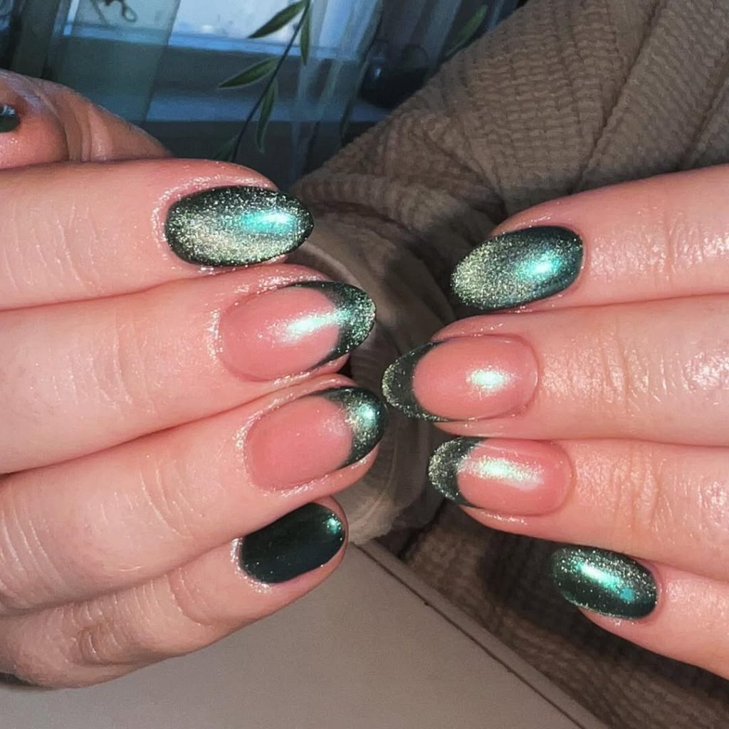 This design is particularly effective on nail which has rounded edges, as the gradient tips will appear more soft. When you need inspo that feels unique and can be worn, it is on-trend in 2025. It is sleek enough with the combination of natural base and chrome edge, and the green has the right amount of drama.
