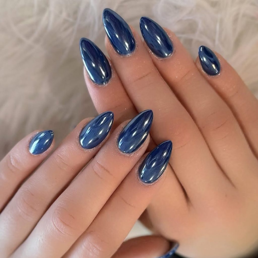 It fits best on almond nails or oval nails and extends the fingers, but also gives the colors rich and full. Blue chrome is an upcoming trend in 2025 that can serve as a new winter option, and it looks good with silver rings or icy beauty looks. This one is perfect in case you are after nails that speak loudly but not yell.