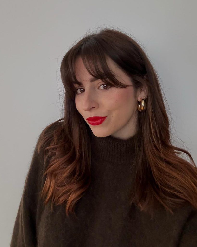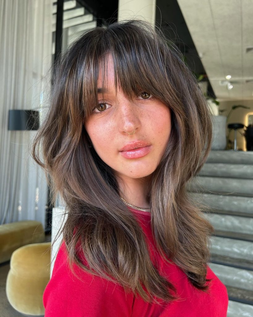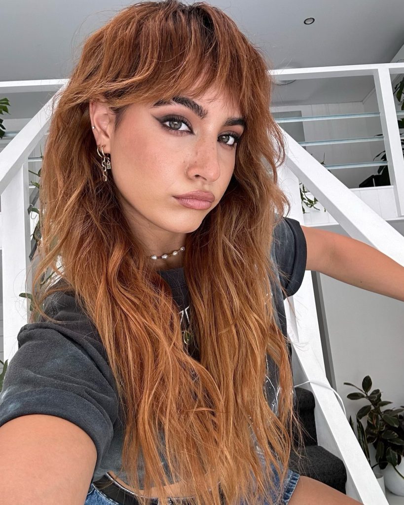 And the shaggy, layered bangs are like genius, they boost the effortless style aspect of the whole look, and the warm copper tones make it look brighter and sunnier.