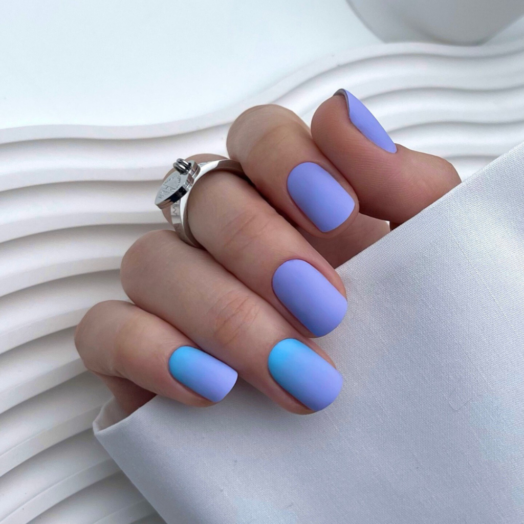 This trendy and contemporary design comes with a matte finish that has a gradient effect from purple to blue. The mixture of blue and purple gives this design a sophisticated and fashionable style, which is exactly what the people who love unique and stylish nail art want. The matte texture gives simple elegance to the art scene, thus making it appropriate for any event.