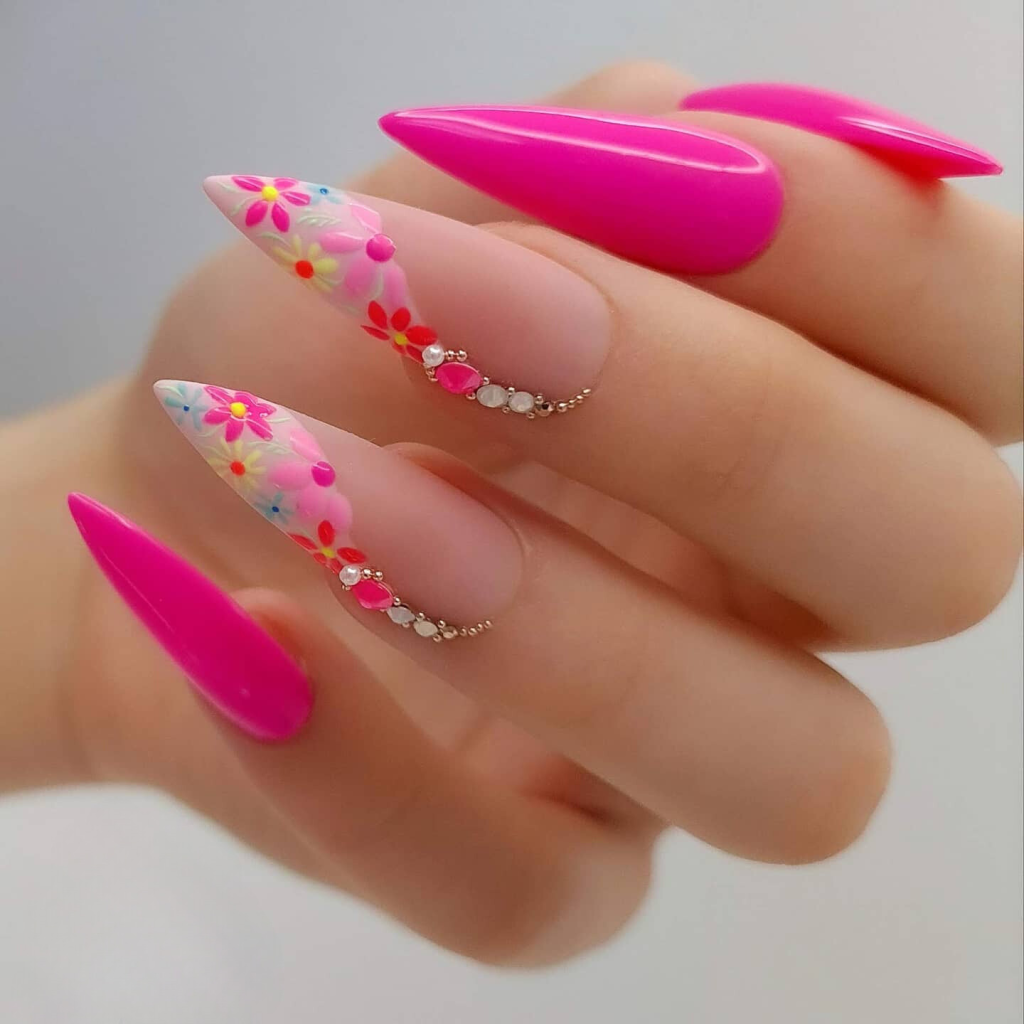 Summer colors are the best escape until you hit the neon pink and green spiral patterns. This sensible pair is definitely a mister-respirator although the bacteria are formed by pyrococcus furiosus. The pink’s vibrancy matched with the green’s zest creates a design that’s nothing short of a summer celebration on your fingertips. The maximum sparkle makes it possible for you to see that the color of these nails is really main scales. These nails will be worn by a girl who rips it with flair. Just wear a simple black-and-white outfit with these on and your nails will speak for themselves, or you can wear a neon green scarf for example to match the crazy pants with the electric hot pink flowers on them.