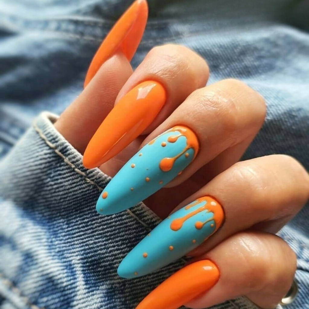 5. Oceanic Drips: Cool Blue Meets Fiery Orange