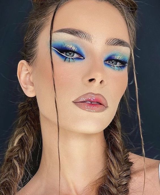 A bright blue eyeshadow that completely steals the show is like a summer sky balmy being its the maximum msbitrary. A this uh-huh aesthetic, with a little help from the nude lip, is the essence of summer’s infinite possibilities. When worn by blue-eyed beauties, it presents such a stark opposition that it appears very much in harmony, which is, in effect, a daytime to nighttime outfit change.
