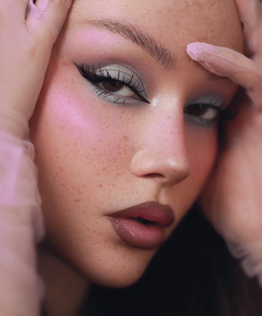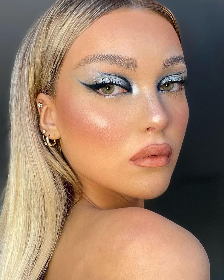 Warm summer evenings, particularly with a sleek reflective silver eyeshadow that has a touch of sophistication, look wonderful. This style is primarily recommended for those who desire a natural and bright look, with a classic winged eyeliner that adds a vintage style. It’s a classic pick, perfect for both brown and blue eyes, and the only outcome is to elevate your summer fashion to the trendy level.