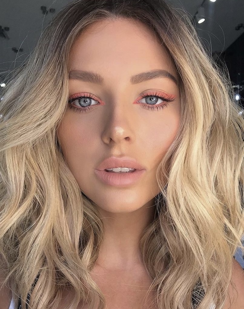Soft coral shades cuddly the eyes as an expression of the morning pastel colors. This casual, natural luminous look is suitable for a beach holiday or a simple summer day out. This is a very easy and straightforward idea for a simple makeup routine, which is a sign of the sun-kissed beauty of the summer season.