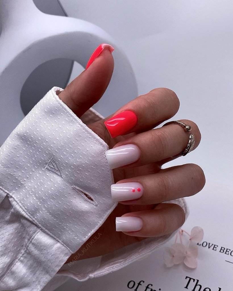 Going back to the retro style, these nails represent the trends of the short with a touch of polka dots, which is the way to go for the young and carefree. Each of the sharp-length nails that are 2024 pink, white, and red colored in addition to the accents of black dots has its own unique story to tell.