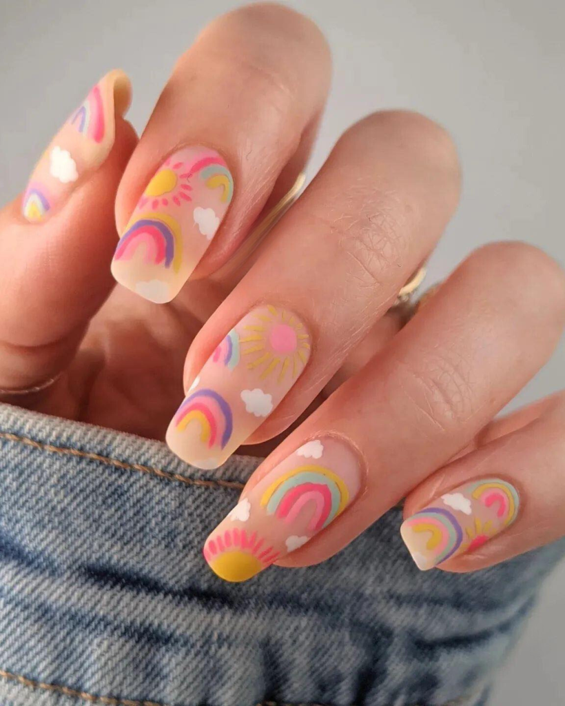 Reflecting the Art 2024 trend, this collection portrays a dreamland of soft pastel colors, just as every bristle replicates summer. The colors blended together are very similar to what we see in summer, particularly at carnivals, where we can look at cheerful rainbows, hear soft winds from fluffy clouds, and shine like the sun. The square nails are the medium for this decorative, which is a synonym for the joy and creativity that summer gives.
