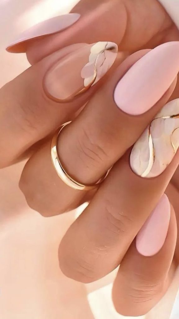 This is a design that harmoniously combines pink and white, which is why they are the perfect duo. The gentle mixing of these colors on almond nails gives one a different look that is able to go from a casual brunch to a formal gathering easily.