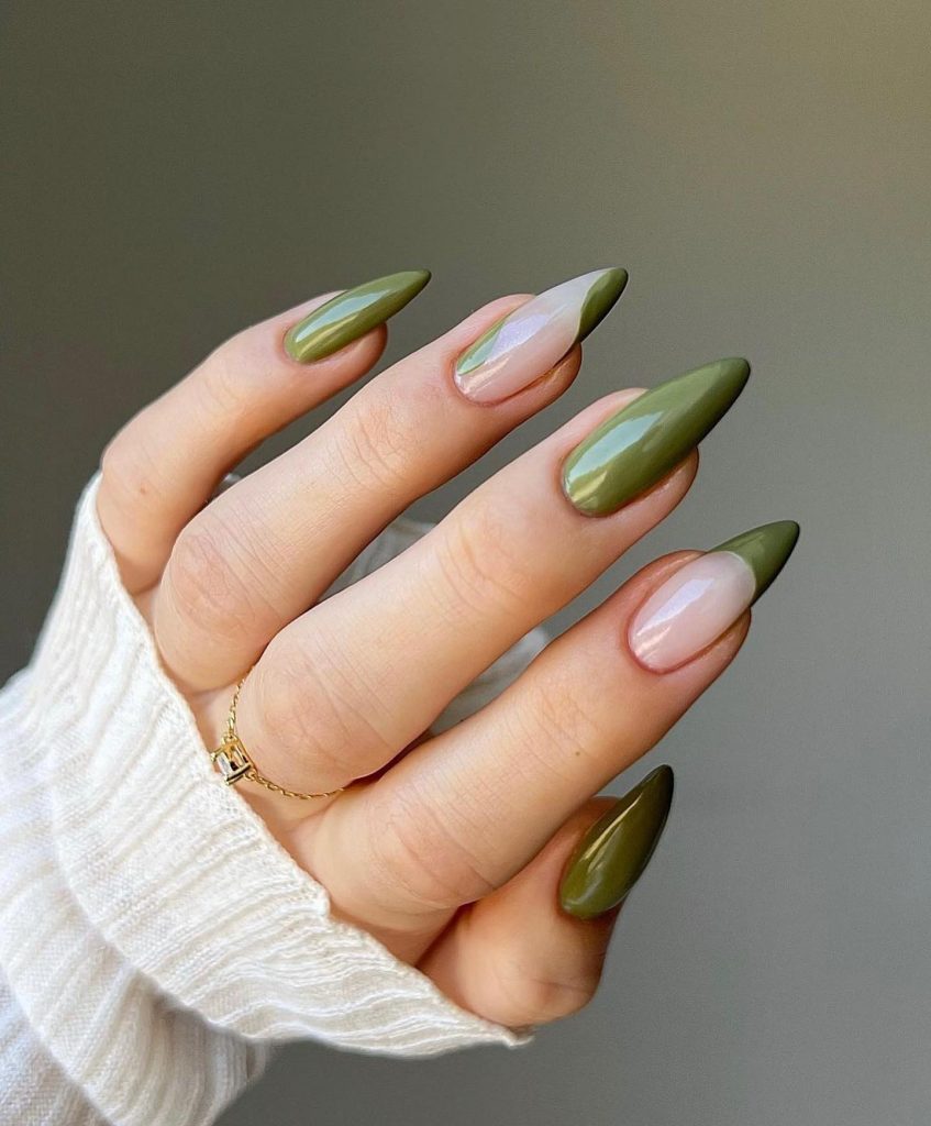 Full of confidence and unafraid, this green almond nail pattern is for the extra courageous people. The color of the nail represents a lively dedication to the fresh plants sprouting in spring. The almond shaping of the nails provides them with an elegant profile, while the shade declares a fashion that is both brand new and advanced.