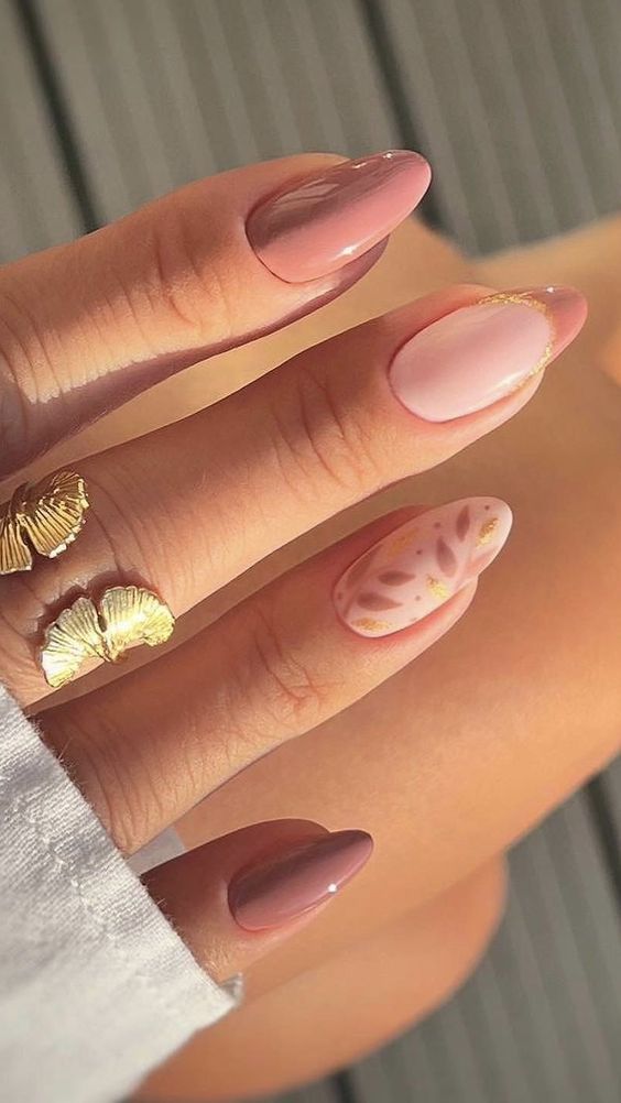 Pink almond nails are an eternal option, yet with the addition of a golden edge, they reach the heights of chicness. This design is a symbol of the luxury and simplicity, so it is perfect for the woman who loves a little bit of glamour without pretentiousness.