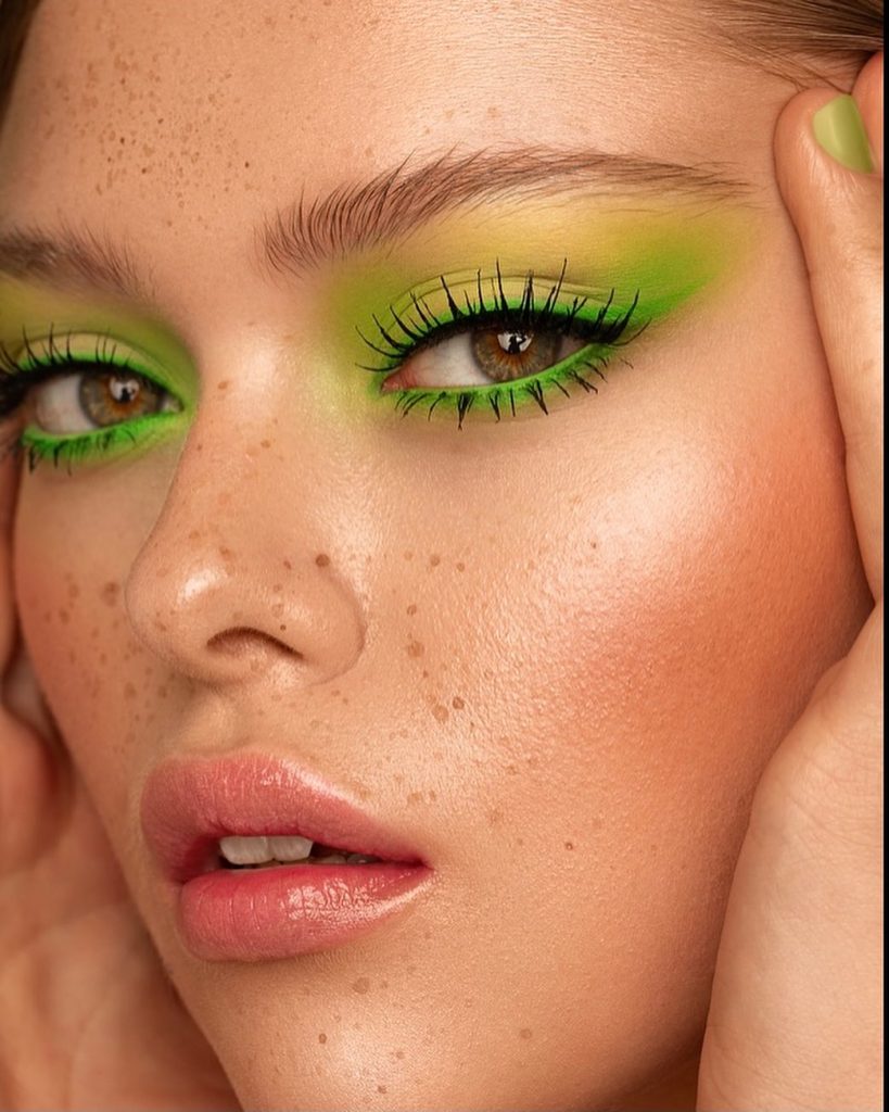 Embrace the vibrant glow of lime with this radiant makeup look that’s sure to brighten any daytime affair. This cheerful and simple application brings a youthful light to the face, making it a cute choice for casual events or a simple mint look for an easy going out. Its aesthetic is as refreshing as it is playful, perfect for those seeking to add a pop of color to their daily routine.
