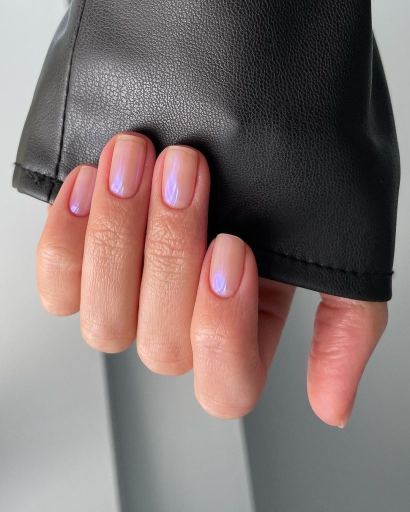 Our last type of nail that we are presenting is a pearl touch, in which every nail emits a timid glow. This design is not only chic but also practical, as it can be worn on both ‘just casual’ days and festive nights. With its short size, it stays pragmatic, but the shiny surface gives it just right summer glimmer.