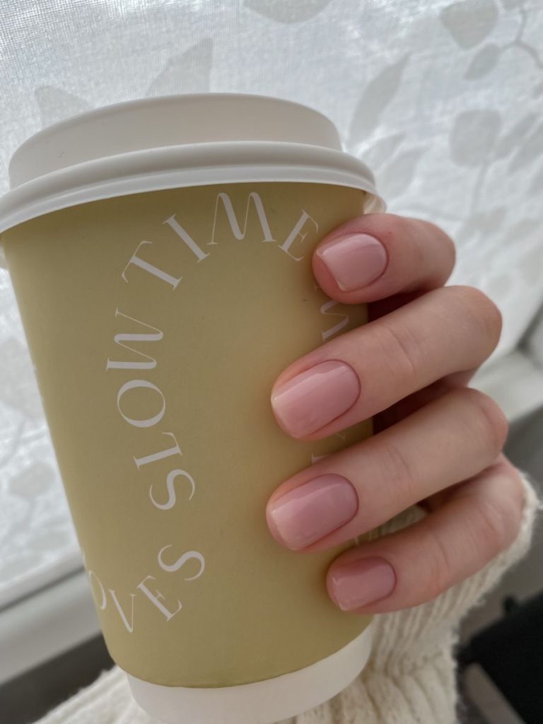 During the time when practicality and fashionable are one, short nails have come to be the top style. The first model is characterized by a chic minimalism with its short almond shape and is a representative of the everlasting charm of the natural look. The nails are painted a delicate pink, which is a color of quietness that suggests rather than stands out. It gives a gentle and soft touch that is perfect with any outfit. This straightforward yet sophisticated appearance pays homage to a woman who, despite the numerous demands of life, remains strong in her personal belief.