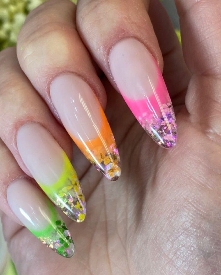 24. Neon Ombré with Crystal Accents