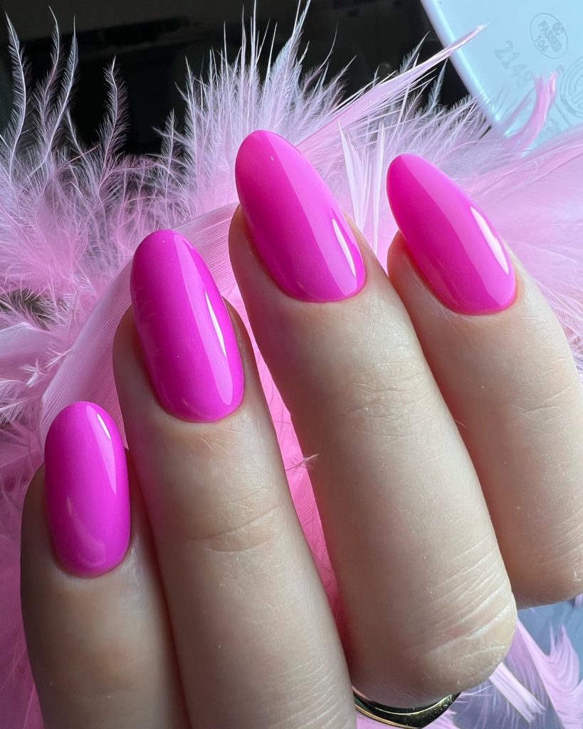 One of the classic designs for simplicity lovers is the solid, glossy magenta like this one which is a timeless option for anyone. The high-gloss finish is a great way to show the vibrant color of the design while the oval nail shape brings a hint of tenderness. This multi-purpose design is suitable for both casual and formal occasions. Finish the outfit with a pair of minimal jewelry for a neat and polished appearance.