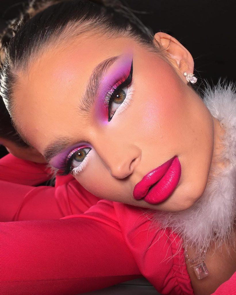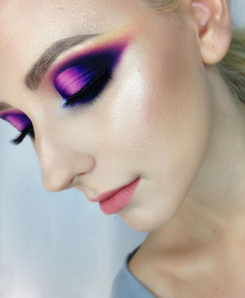 The styling of the outfit with these shades is no other than respecting the gradient model of purple and blue. Hence, it is quite easy and impressive to paint such a stripe on the wall. Practicality and aesthetics – this look shows how these two aspects can coexist in harmony. Girls, especially those with blue-eyed beauties, could use a chance to wear a makeup look like this, Get ready to take the challenge and turn your eye shade into a stunning baby blue by pairing it with a hot pink shade of eyeshadow.