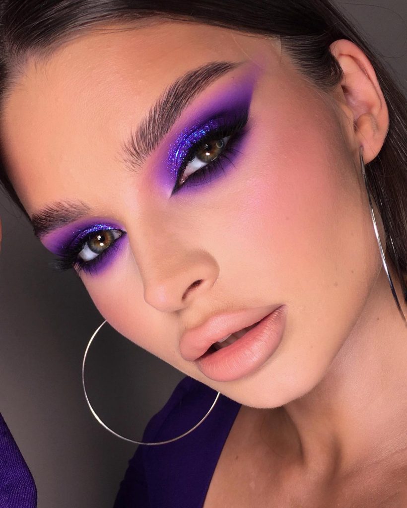 This bright look brings the metallic shine of amethyst to life and is very unique as the eyelid is covered in shimmering purple which is the main color here. Radiantly, this is a glam style fit for a bold statement on stage and could also be worn as a showstopper at any evening event. It is a look that can be matched with a step by step guide for those who are eager to copy its charm.