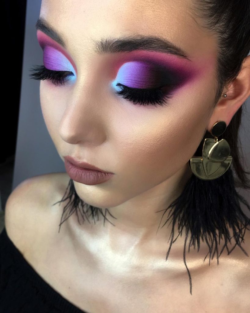 This extreme effect is immersed in over-the-top neon colors, combining electric purple with red-hot pink and a touch of blue. It’s a fearless decision for brown-eyed or green-eyed girls, instead of being just a part of your outfit, it is intended to be the focal point with you on a partying night. Although the method involving steps to get the i.e. look may seem convoluted at first, the result of your efforts will be extremely impressive.