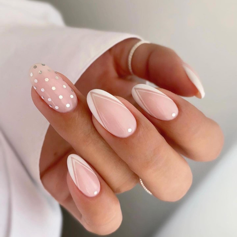The passionate play of bright red against a serene pink backdrop makes a bold statement of confidence and flair. Perfect for the woman who wants to showcase her dynamic personality, these almond-shaped nails feature a luscious red that commands attention. The whimsical scattering of dots creates a look that’s both fun and sophisticated, perfect for summer evenings out or making a statement at work. They embody the ideas almond trend while offering an easy way to add a pop of color to your look.