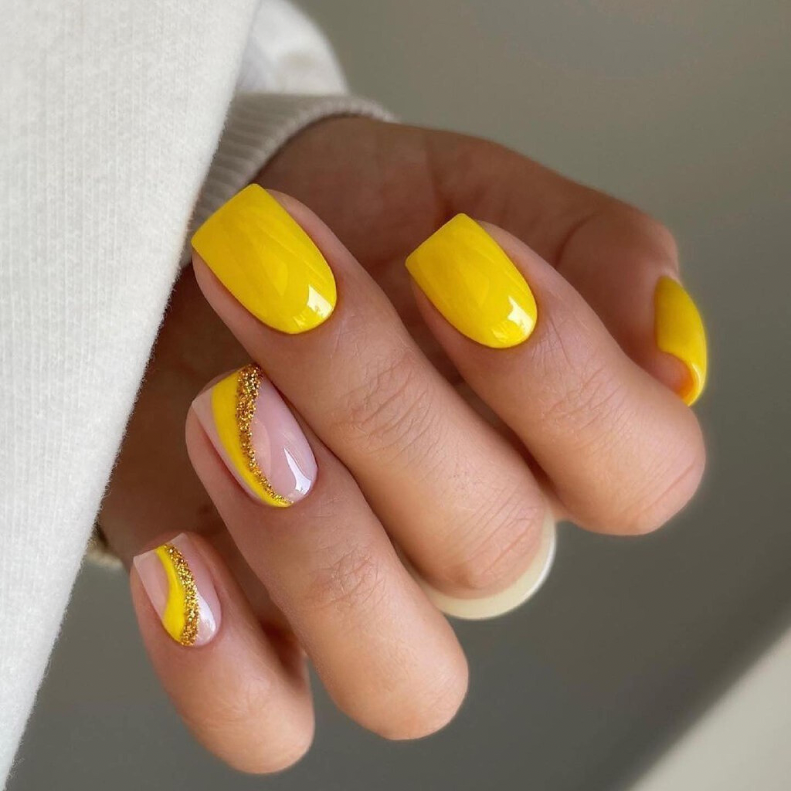 Bold and bright like the midday sun, these short, simple nails in a vibrant shade of yellow capture the essence of summer in every way. One can almost taste the lemonade with the rich, glossy polish that’s as refreshing as it is stylish. Adorned with a sprinkle of golden glitter along the smile line, they offer a playful yet chic look, perfect for anyone embracing ideas short 2024 trends. The art lies in the contrast of matte and shine, proving that summer vibrance isn’t just about color, but also texture and light.