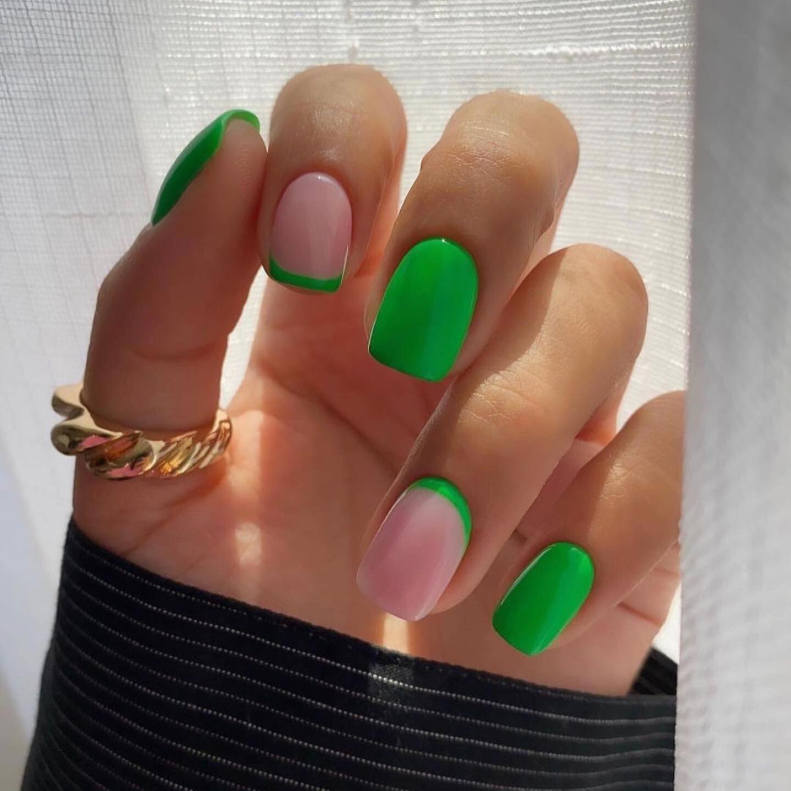 Enveloping the spirit of new beginnings, these short nails feature a zestful green that energizes with its bright and simple charm. The striking contrast of the green tips against the natural base makes a statement that’s both playful and grounded, capturing the ideas short simple vibe that’s all the rage this 2024. It’s a style that speaks to those who dare to be different while keeping their look easy and approachable.