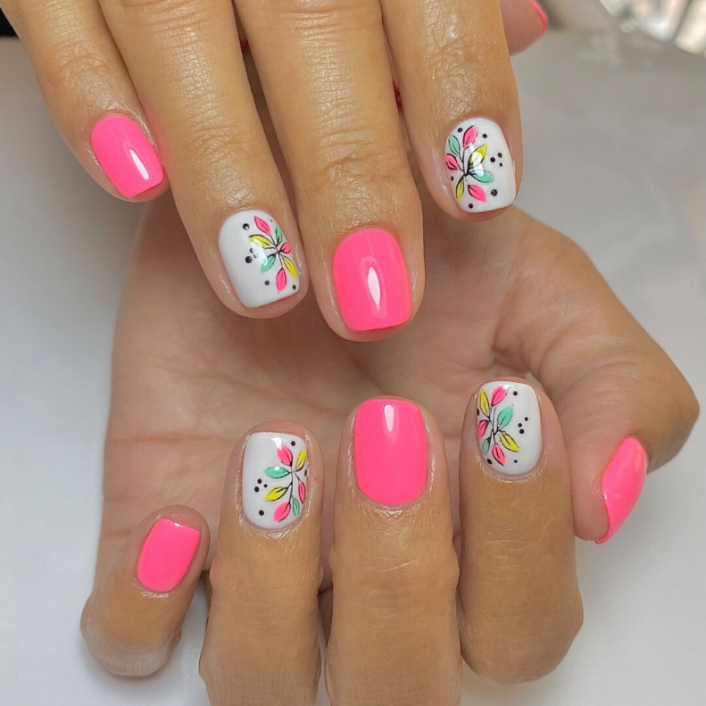 Vibrant and vivacious, this design’s bright pink is a bold declaration of fun and femininity. Paired with a dainty floral pattern on a white base, it perfectly balances bold and simple. These nails are for those who embrace the cute and pretty side of summer, offering a refreshing splash of color to any look.