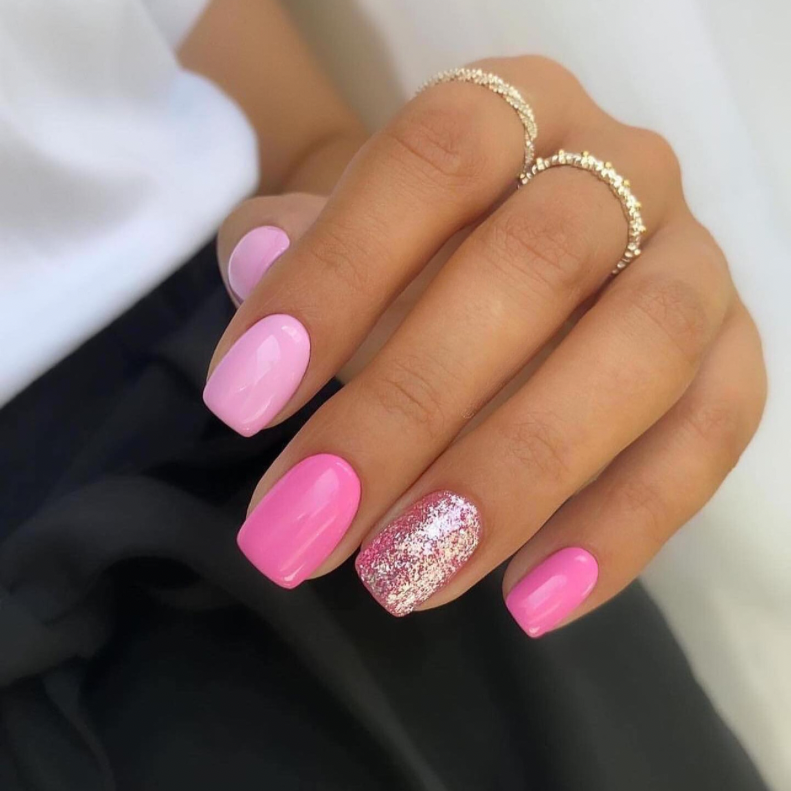 Sparkling like a glass of rosé in the summer sun, this set offers a touch of glamour with a glitter-dusted accent nail. The vibrant pink encapsulates the essence of youth and joy, making it a timeless choice for anyone who believes in the power of a good manicure. The design reflects the ideas short simple charm that appeals to all ages.