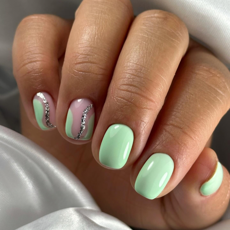 24. Serenity in Simplicity: Minty Freshness with a Sparkle