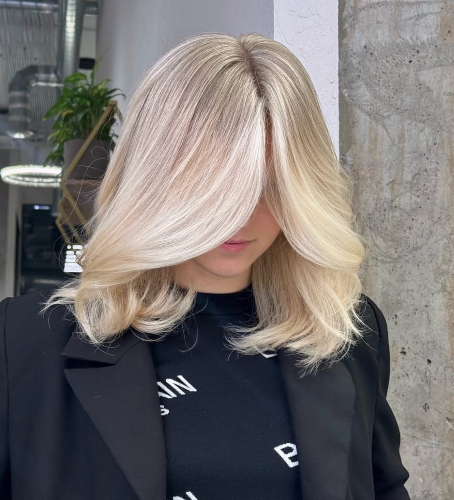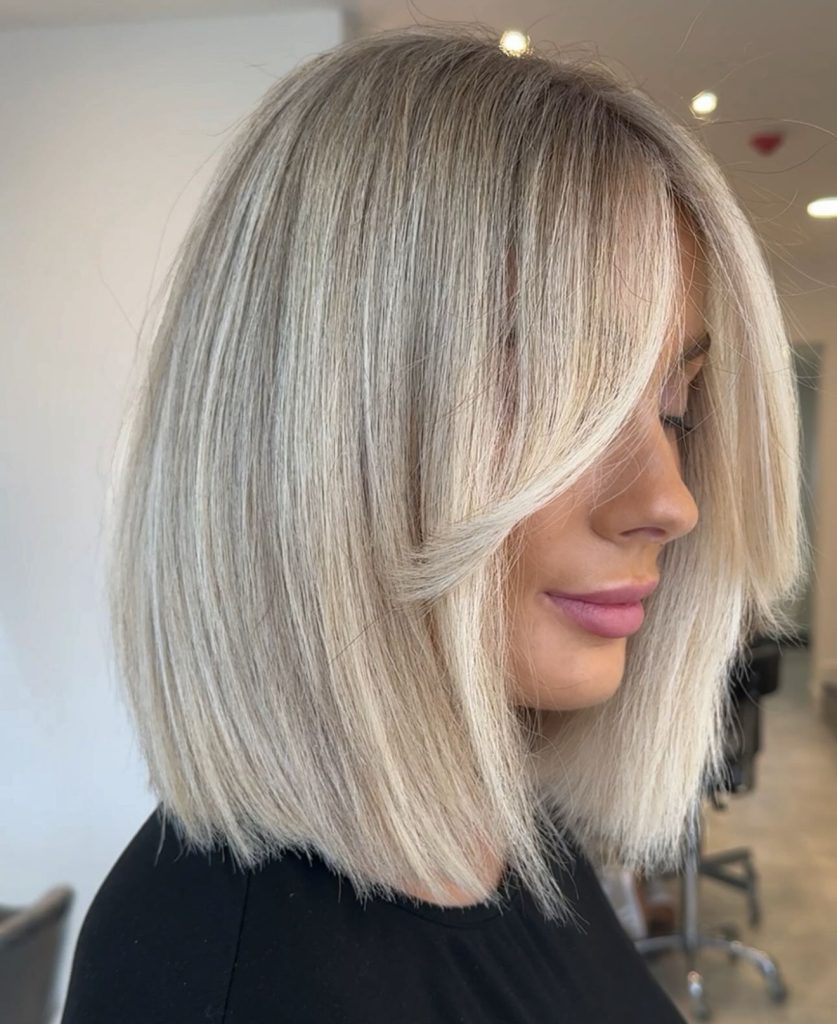 4. Sleek Blonde Medium Bob with Curtain Layers